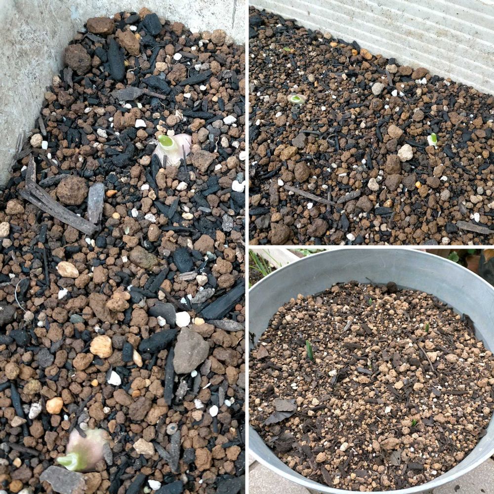 右下の丸い鉢だけ伸びていたので土増ししておきましたが、日影に置いておいた他のプランターはあまり芽が伸びていませんでした😢