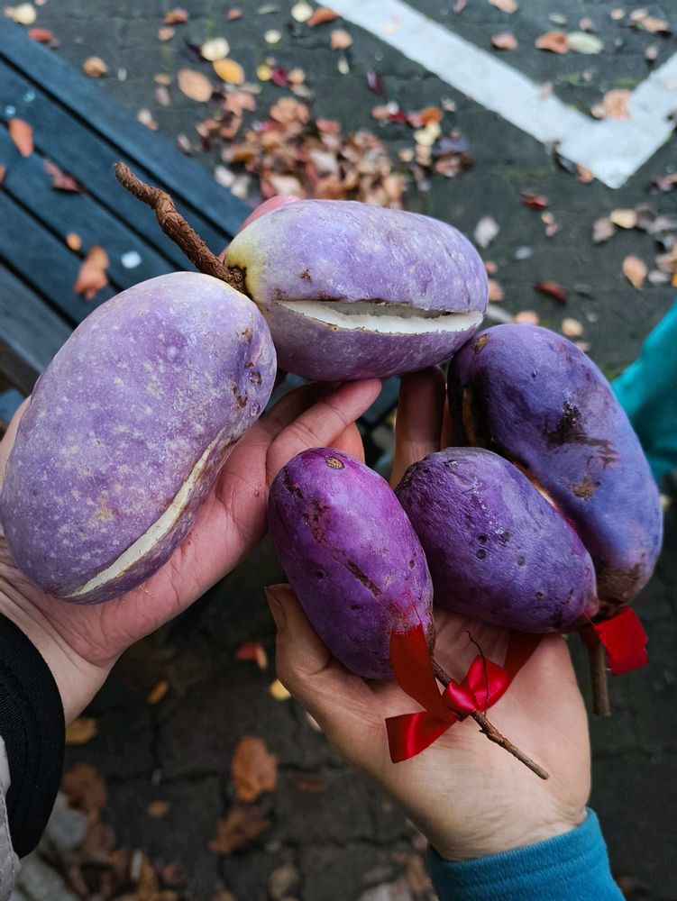 そうですね、ムベはコロンとしていて、アケビはずっしり大きく育ちます。