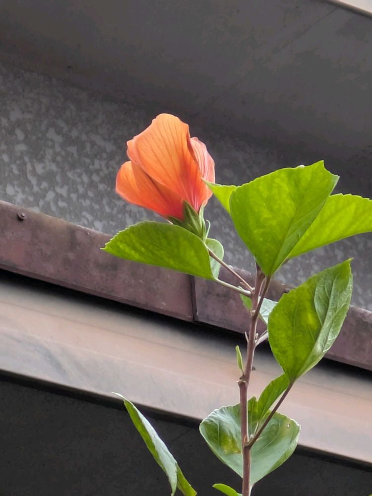 自転車🚲で走っていたら 可愛いオレンジ色🧡のハイビスカス🌺見ーつけた🤗