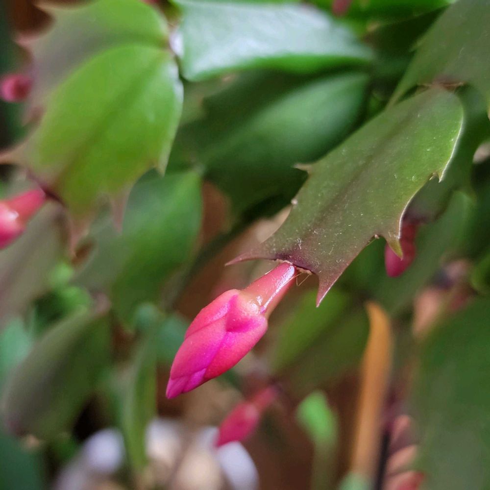 シャコバサボテン カーテン越しに蕾が成長中です😍