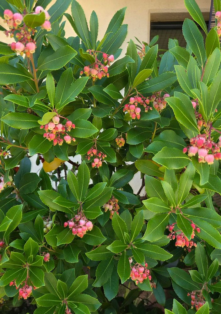 名前はイチゴの木てすが果物の🍓ではなくツツジ科の常緑低木です。壺型の🌸は丸い赤い実に成る様ですが私は未だ見たことが有りません😞💨実が熟すのに約1年がかりで実が熟す珍しい樹木の様です見たいですね😃旅先でパシャリ🤳しました。