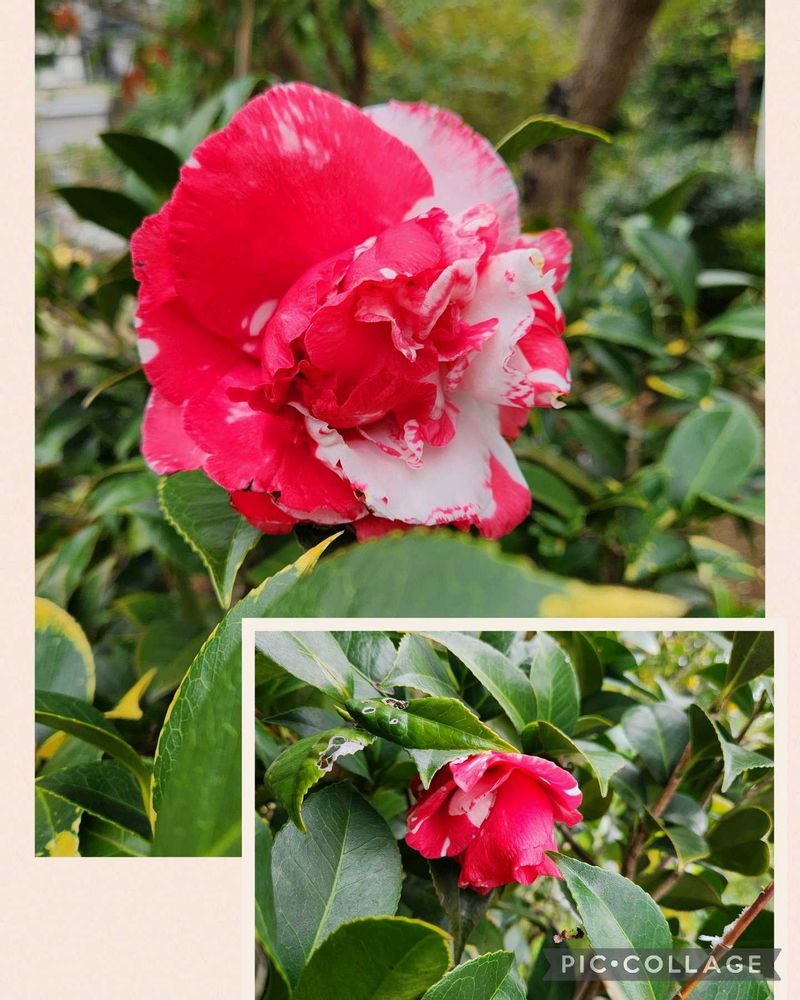 この椿、紅白絞りで派手派手なんですよ〰❣️