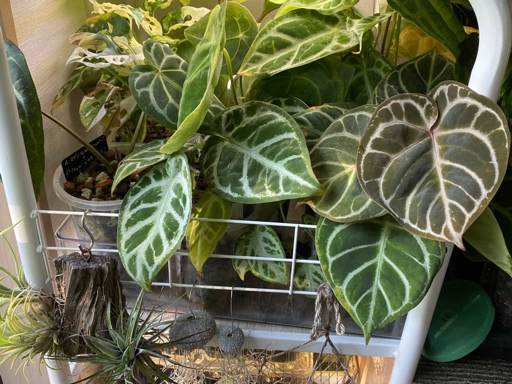 アンスリウム達は育って、カラテア達は日当たり悪いから勢力弱くなってるかも😅