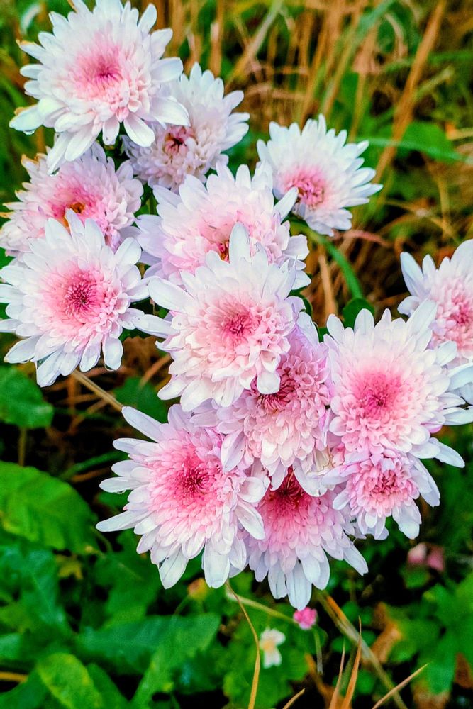 公園の雑草だらけの花壇に可愛らしい菊が咲いていました。