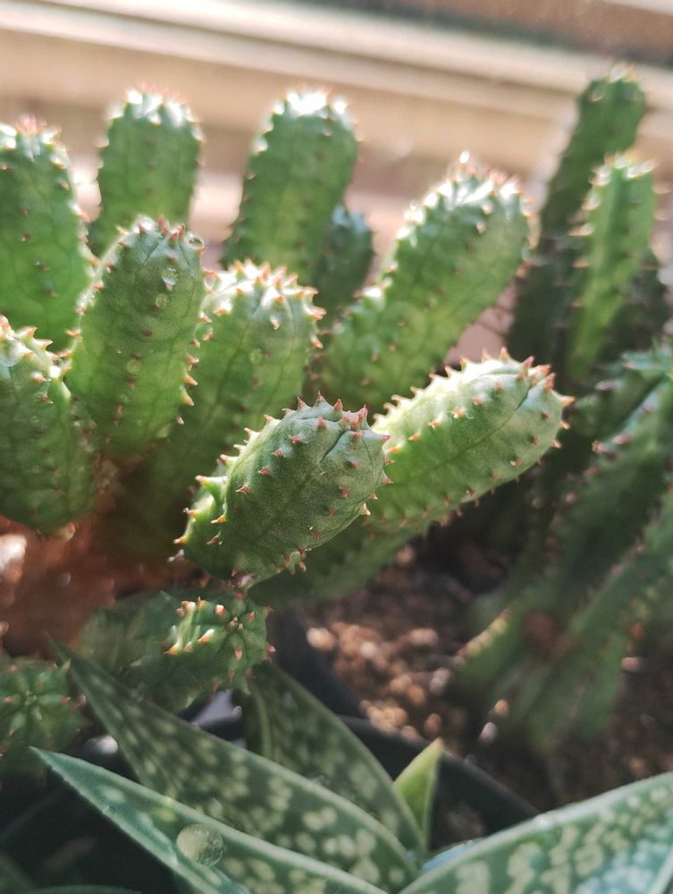 ユーフォルビアばかり並べてる窓辺。随分大きくなりました😊お子様も出てました❣️