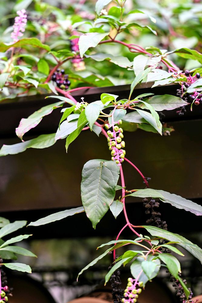 ③④ヨウシュヤマゴボウの鮮やかな色としなやかなフォルム、毒草なのが残念