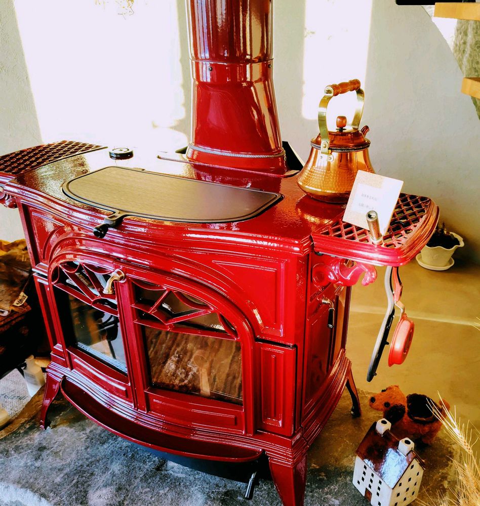 真っ赤な薪ストーブが相変わらず可愛い💕