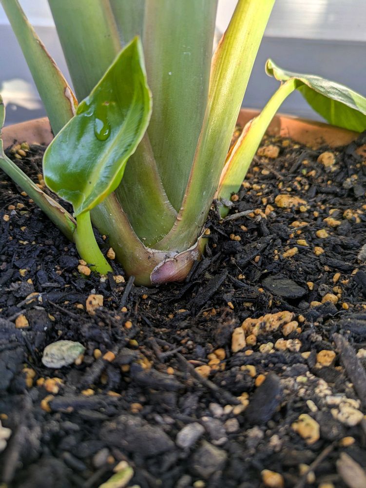 ストレリチアさんは葉っぱ🌿の茎の辺りから出て来るので、下の方から出てきたのを見た事はありません。