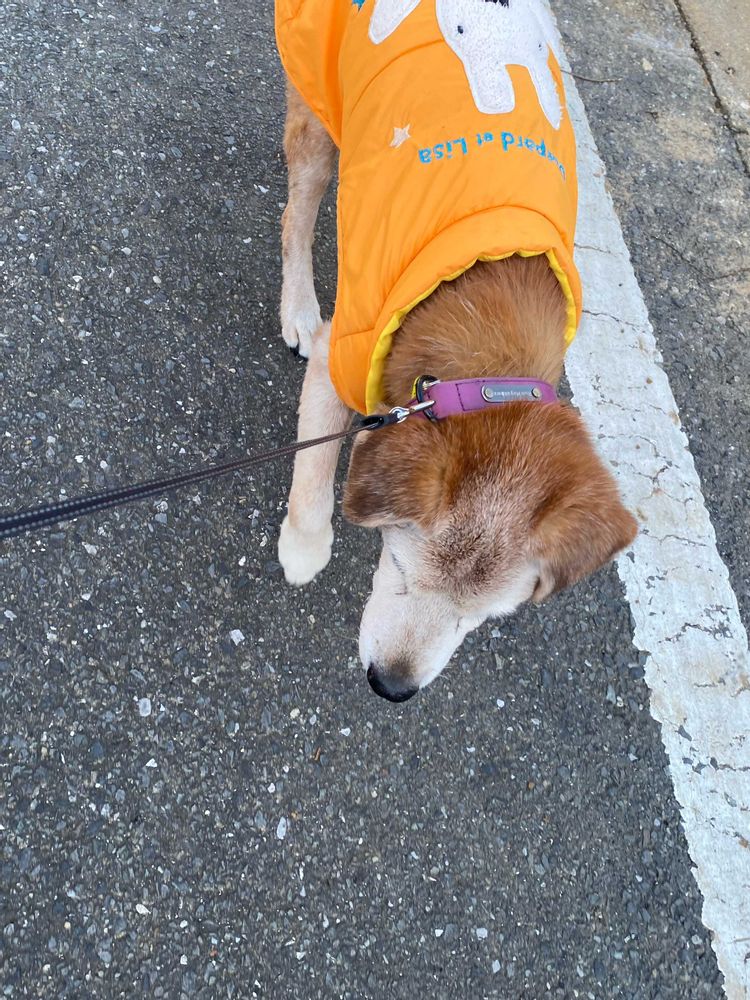 それでもお散歩に喜んで行くので、出来るだけ暖かい時間に短い散歩を楽しんでいます😊