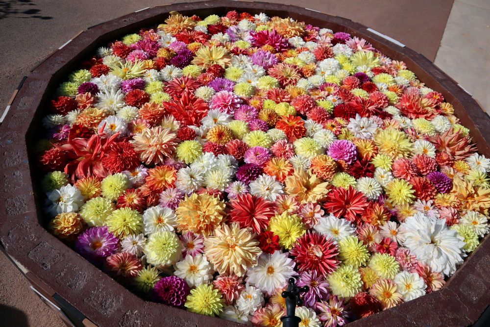 ここの施設は春はチューリップ🌷、夏はひまわり、秋はダリアとそれぞれ季節で咲いた花を水に浮かべてるんですよ😊