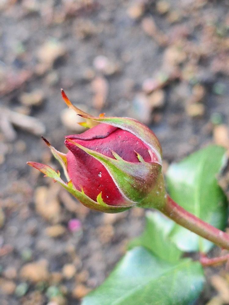 冷たい雨が降り、ベチャベチャ雪が降り、アラレが降り、そんな気候の中でも蕾を出している薔薇