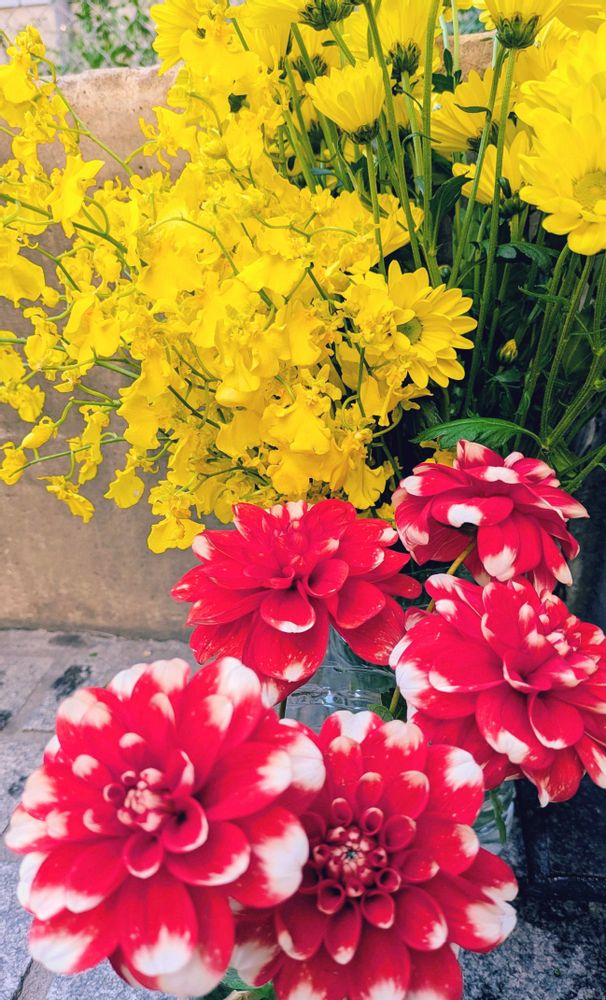 2枚目には赤いダリアが可愛いので追加しました♥️💛