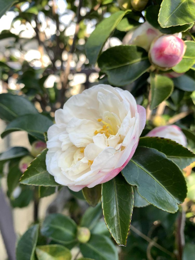 駐車場横のサザンカより少しピンク色が入ってるかな?