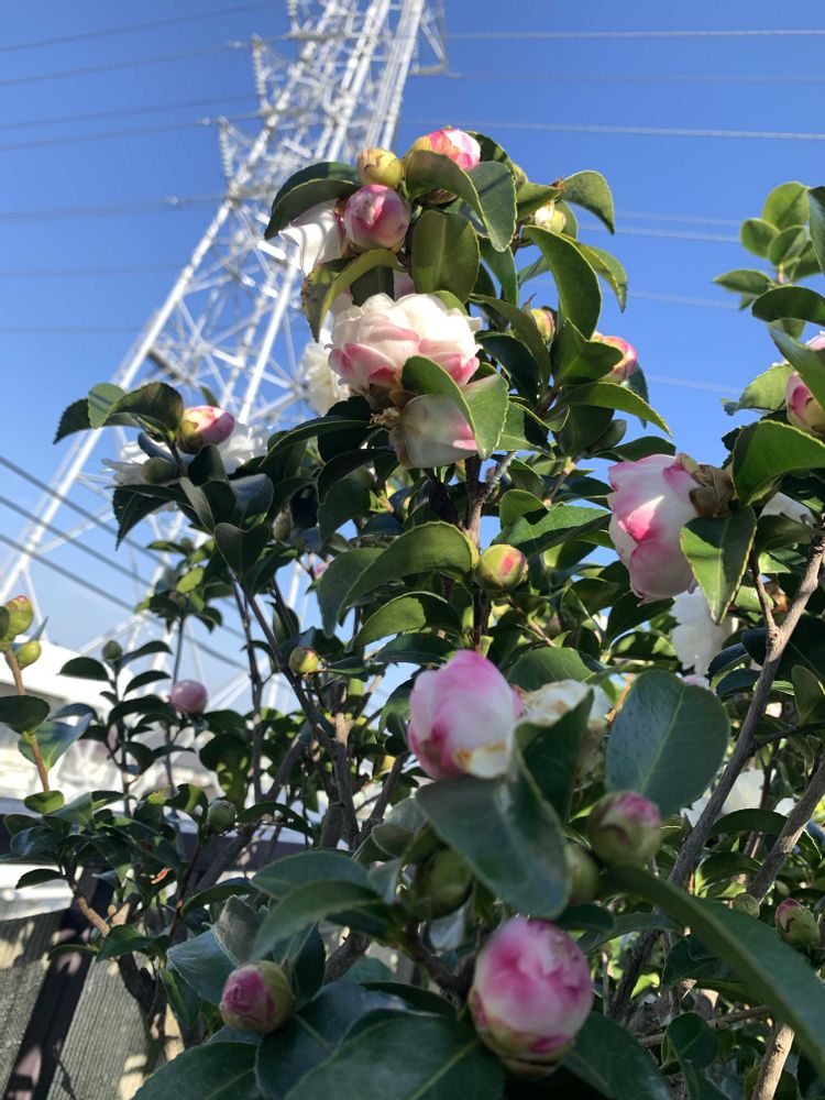 仕事が忙しく久しぶりに屋上に出たら『サザンカ』が満開になってました!!