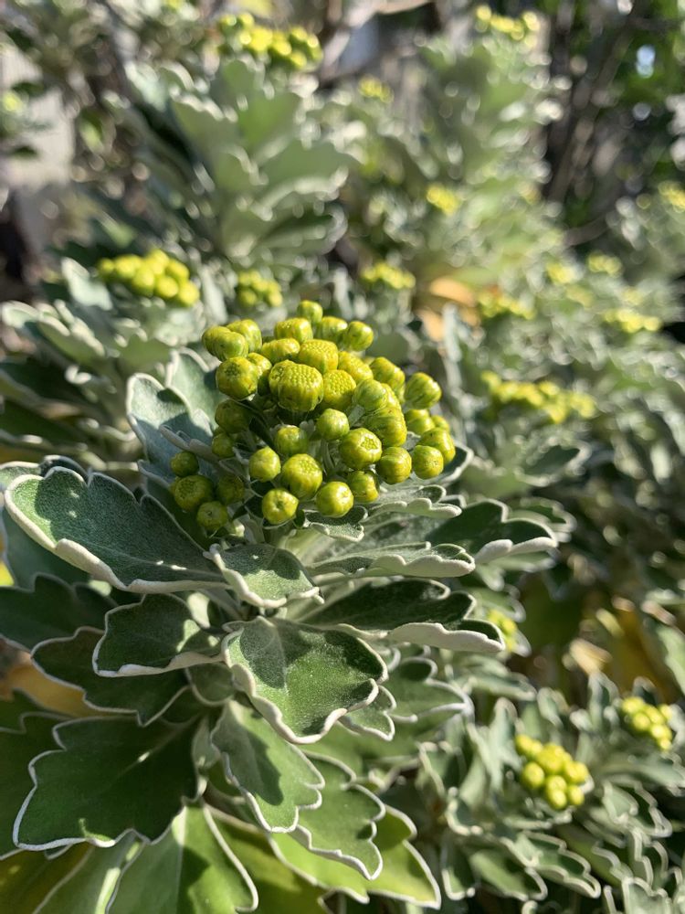 『イソギク』が中々開花してくれ無いけれど、かなり黄色く膨らんで来ましたd(^_^o)