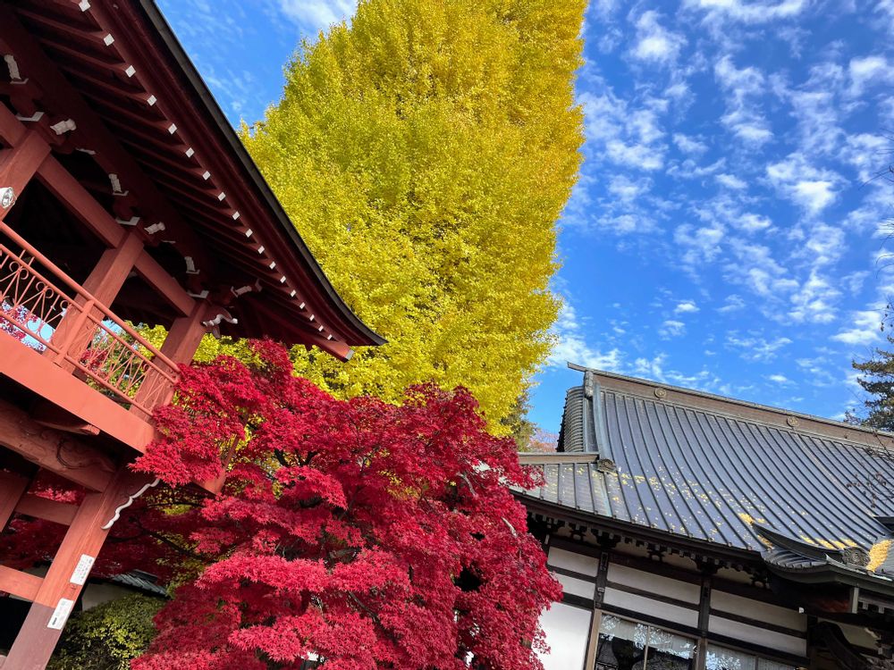 初めて訪れたんですが、もみじだけかと思ってたらでっかいイチョウの木まで🌲
