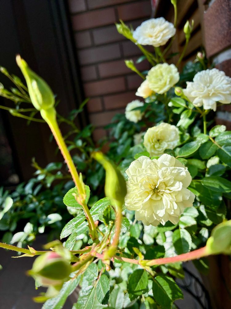 ミニ薔薇さんたちが沢山咲いていますね🎶グリーンアイスさんやわあ〜スウィートチャリオット咲きだしましたね〜しなやかな枝に蕾もたくさん❣️素敵✨