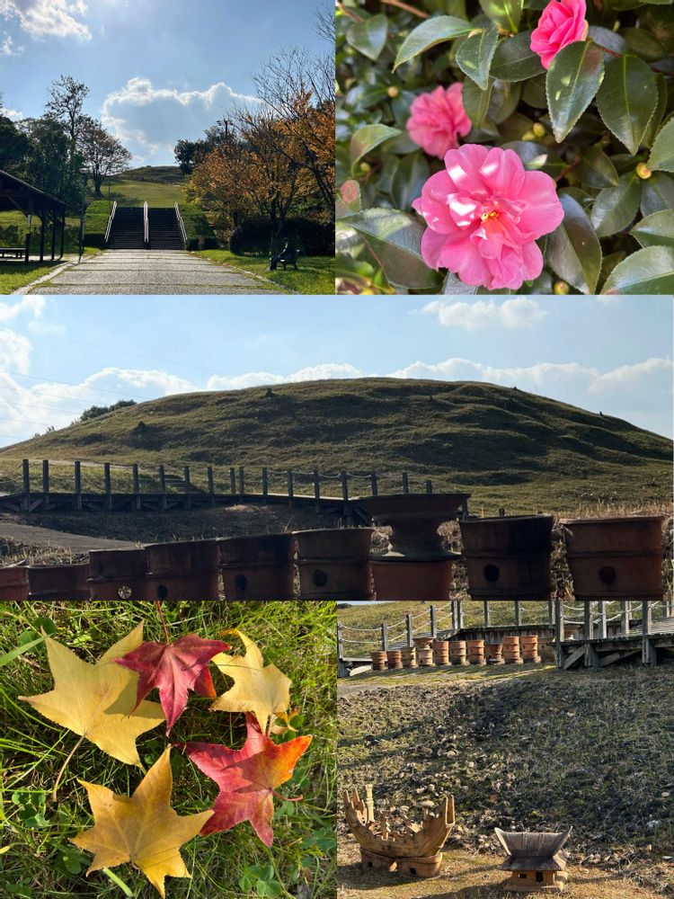 【紅葉🍁黄葉、サザンカ、ホソバヒイラギナンテン】(番外編:古墳、美味しい物)
