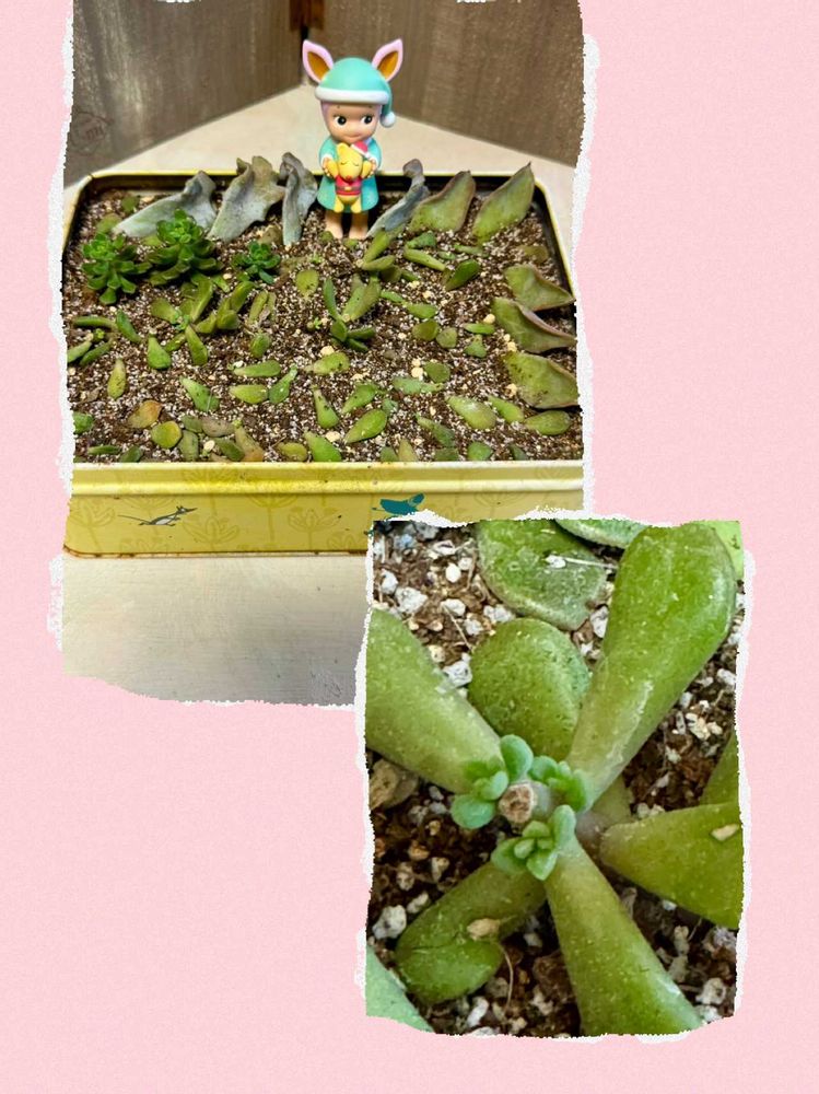 3枚目は先日植え替えした時にモギモギした葉挿し🌿