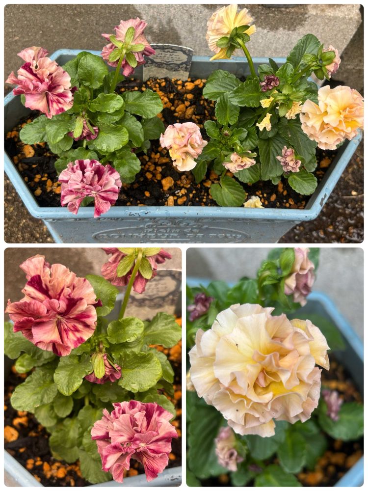 パンジーは札を見たらパンジーモルゲンロートって書いてありました。HCで昨年植えたのもあったのですがこちらのブリブリと色に😍でした