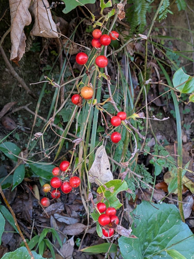 サルトリイバラの実が赤く色付いていました。