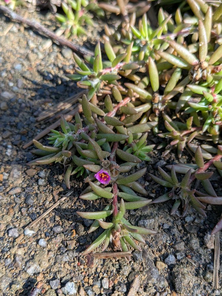 田んぼ横のアスファルトの道の上に溜まった土の上にヒメマツバボタンが咲いていました。