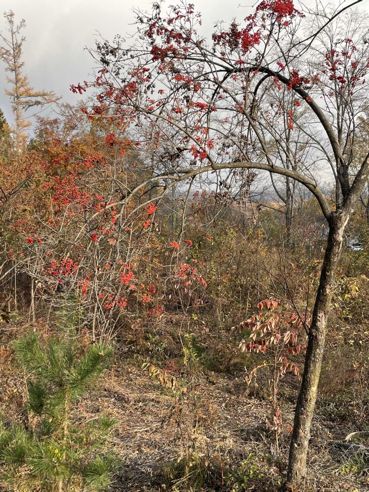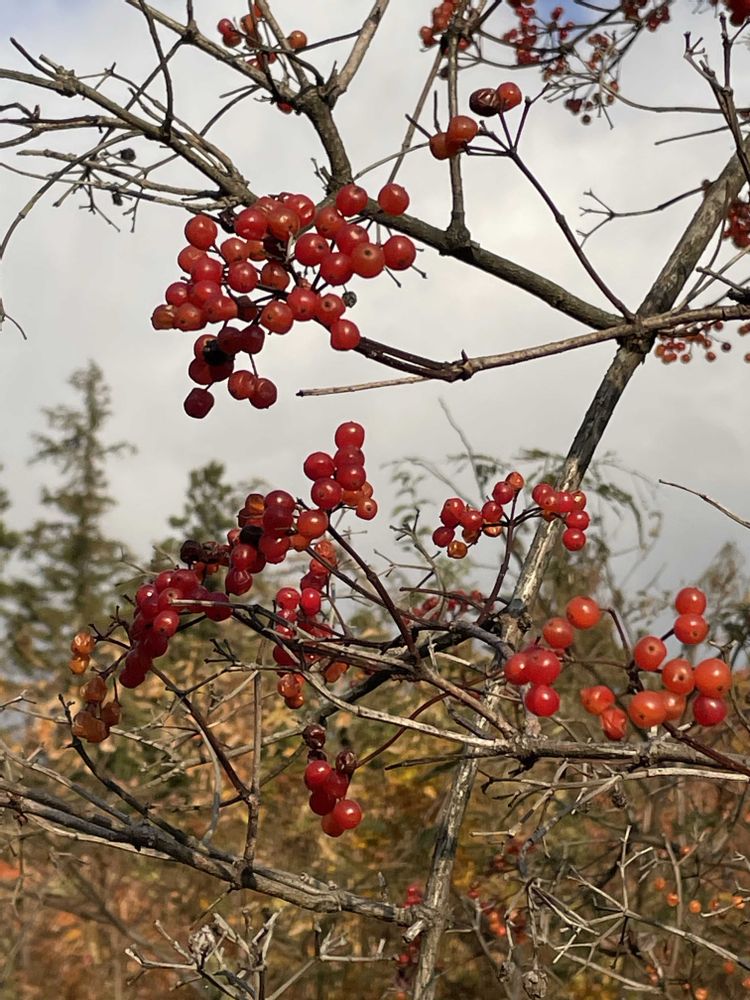9月から10月にかけて赤く熟し、直径7~9mmほどの球形です。