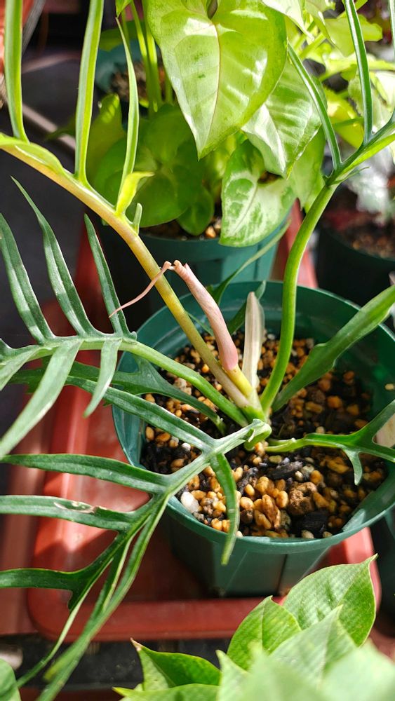 今まで育てたフィロデンドロンでもダントツに遅いです。葉が細いから光合成からの代謝が遅いんだと思います。まだ分からないけど、これ、結構難義かもしれません。
