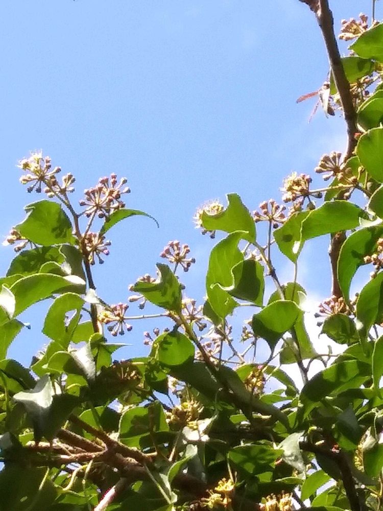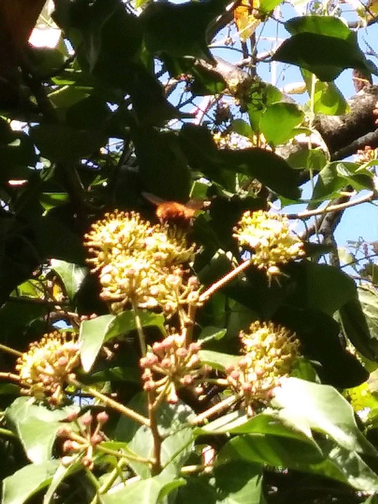 ①② 裏庭を歩いていたらブンブン🐝と騒がしいので見上げると雪❄️の重みで折れ曲がった桜の枝に絡み付いてる木蔦の花が咲いてました✨