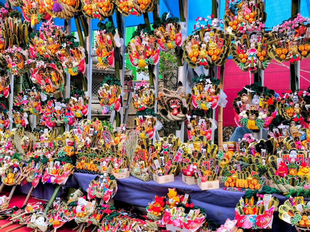 今日は本殿前に写真撮影用に飾られていた菊花と酉の市のお店があった参道の様子です😄