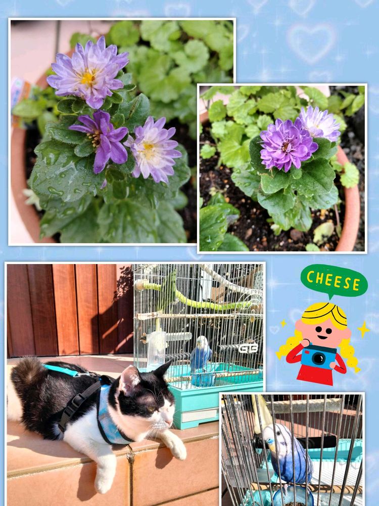 今日もぽかぽか暑いくらいいい天気でした🌞ツーショットで仲良く日向ぼっこでホントに癒されました🪴😽🪴🐦🪴みんな元気で冬を乗り越えていきたいです(θ‿θ)