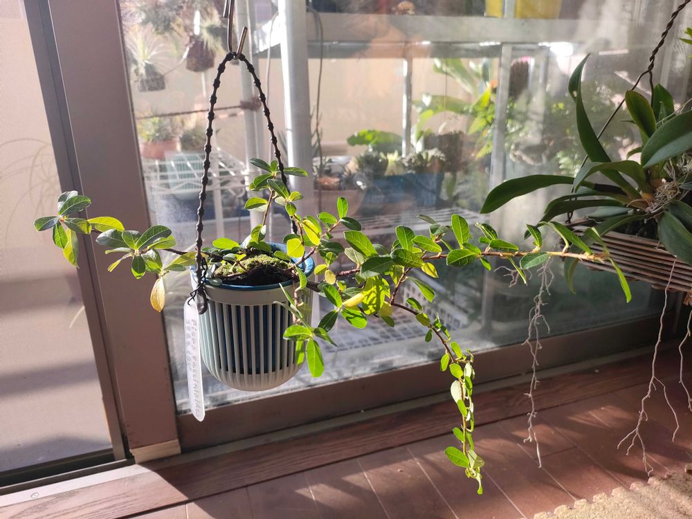 去年の冬はベランダで冬を越して無事に冬を越しましたが、今年は吊り鉢に植え替えて部屋で過ごしてもらう事にしました。
