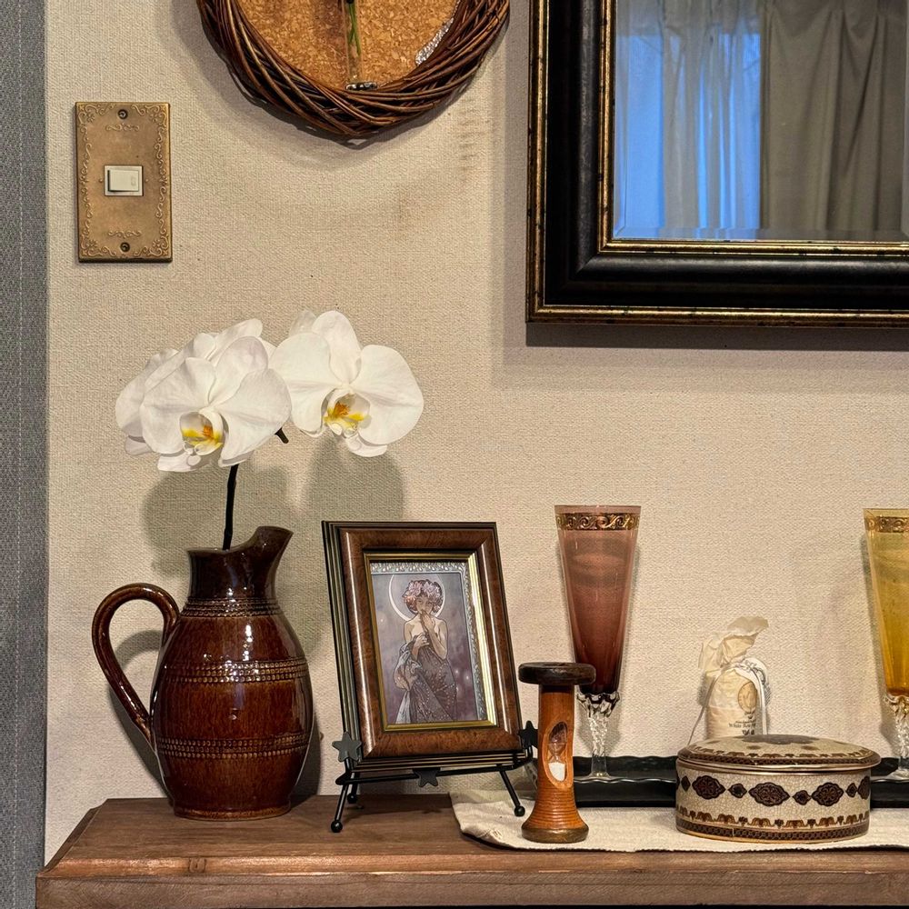 インテリア仏壇「鏡壇ミラリエ」「鏡壇ミロワ」に今日(11/15)の誕生花の「ファレノプシス(胡蝶蘭)」 を飾ってみました。