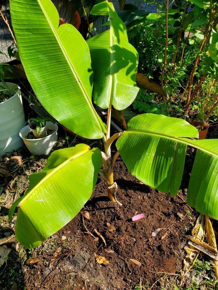 今日は、沖縄から送っていただいたアップルバナナの苗を植えました。果樹用プラポットが根でパンパン!