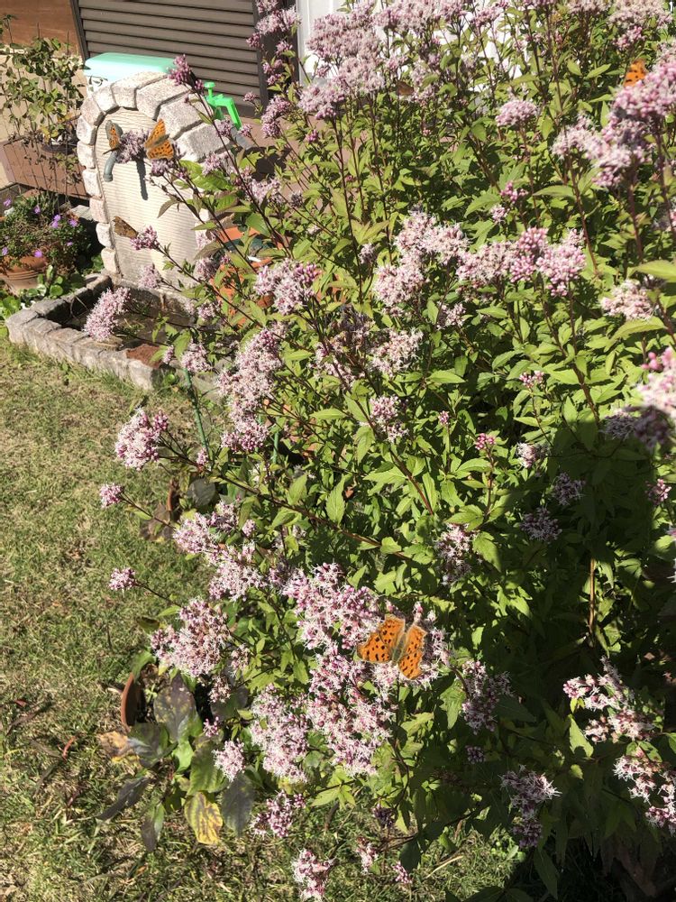フジバカマも終わりに近づいています。冬の準備で刈り込みたいのですが。このオレンジ🧡の来客が多くてお楽しみのようですので今日はやめときますか。