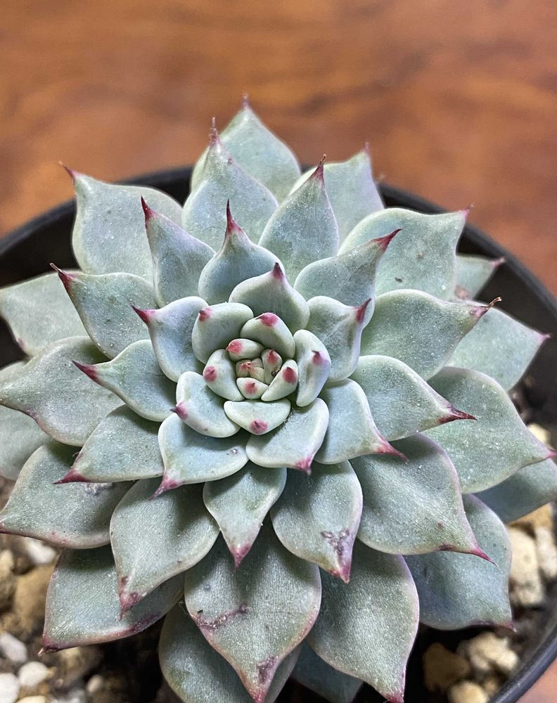 エケベリア✨メキシケンシス・ザラゴーサさん✨酷暑を乗り越えた強い子です♡爪が赤く染まってきました💅➡️ど真ん中💖