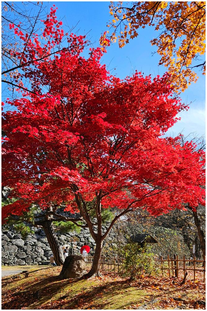 紅葉まつり真っ最中の小諸城址懐古園の紅葉をアップ