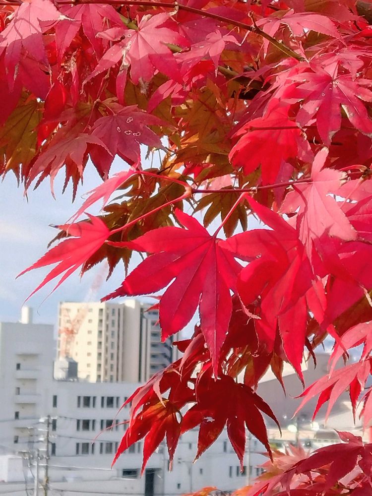 ふと上を見上げると、紅葉と青空とお月様が目に入りパシャっと撮ってしまいました😄