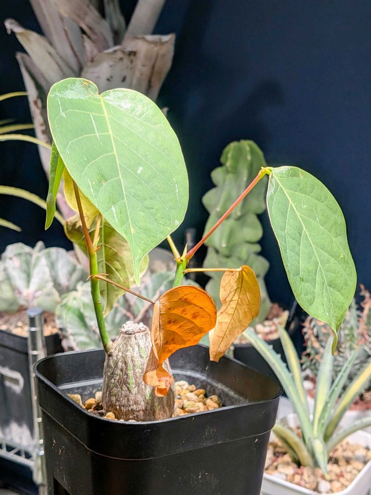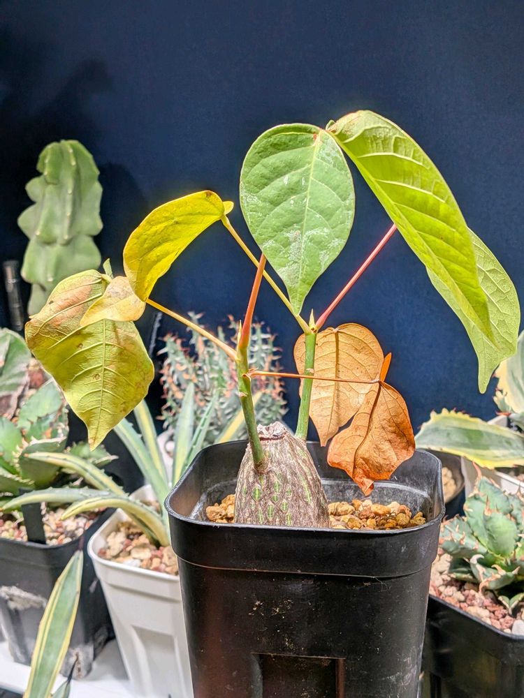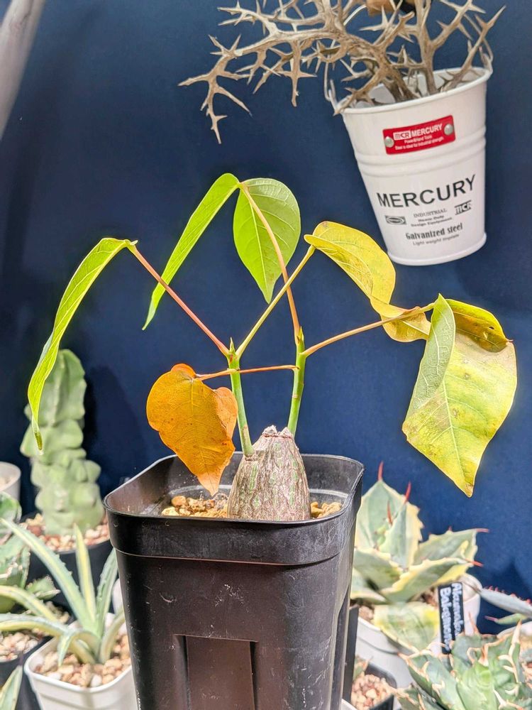 小さいうちはパキラみたいな感じの冬季落葉で、頭打ちすれば幹が太るみたいです😊