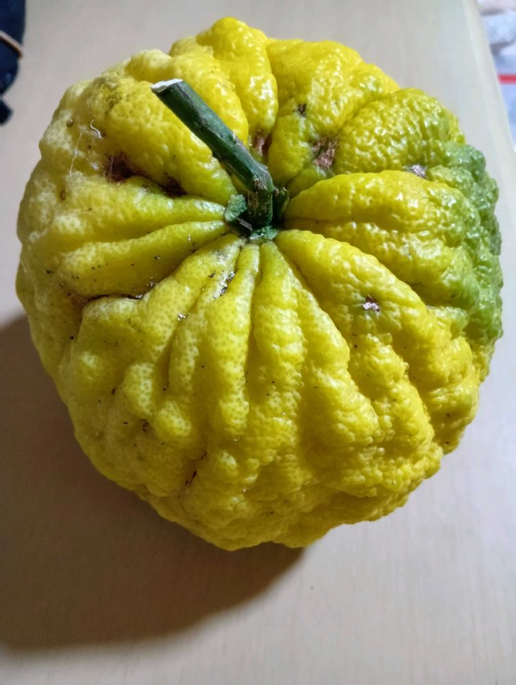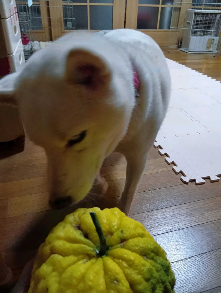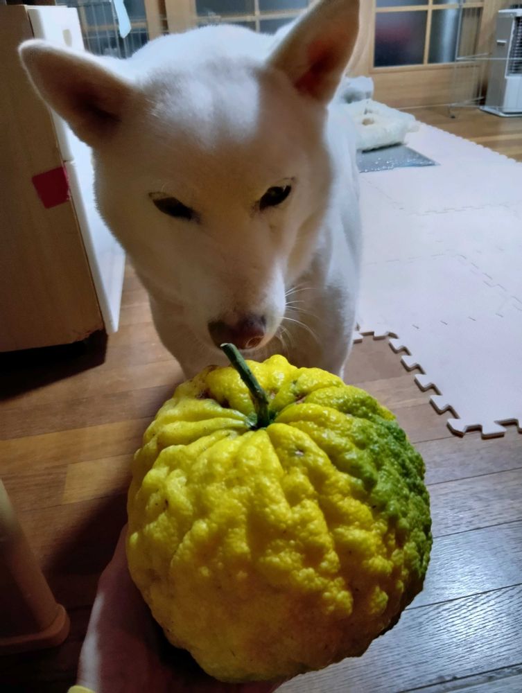 いただいた立派な鬼ゆず👹、こゆき🐕🦺の顔より大きいです🐾
