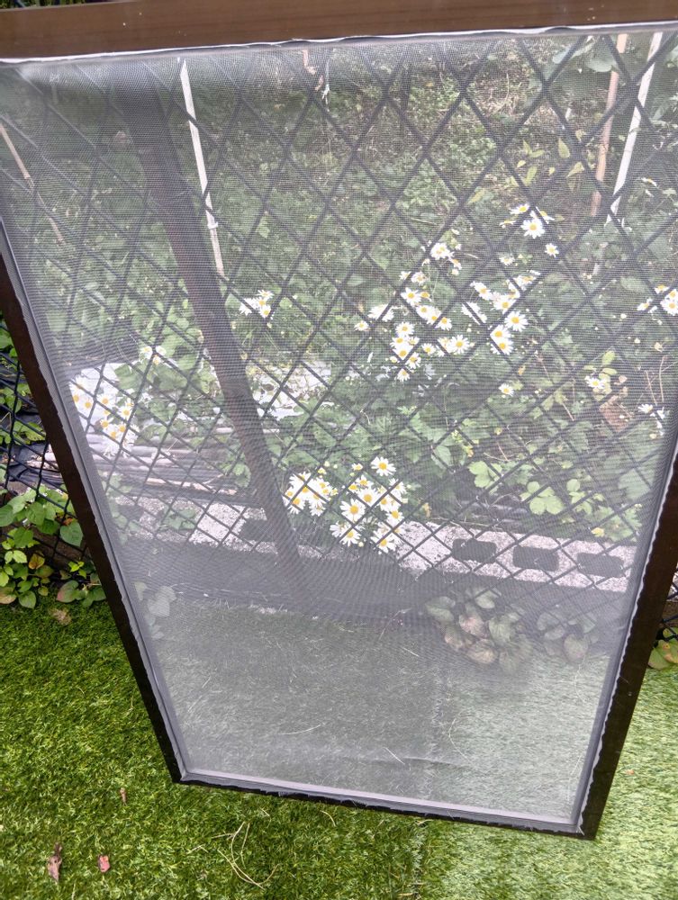 張り替えた網戸を立て掛けたら可憐な野菊🤍のキャンバスになりました✨