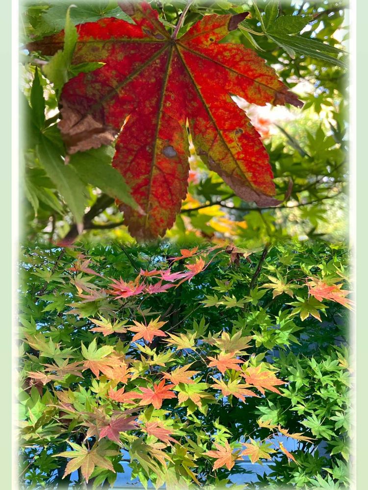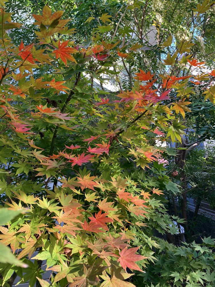 イロハモミジ、赤の他、オレンジや黄緑等、色んな色が混ざっていて華やか✨