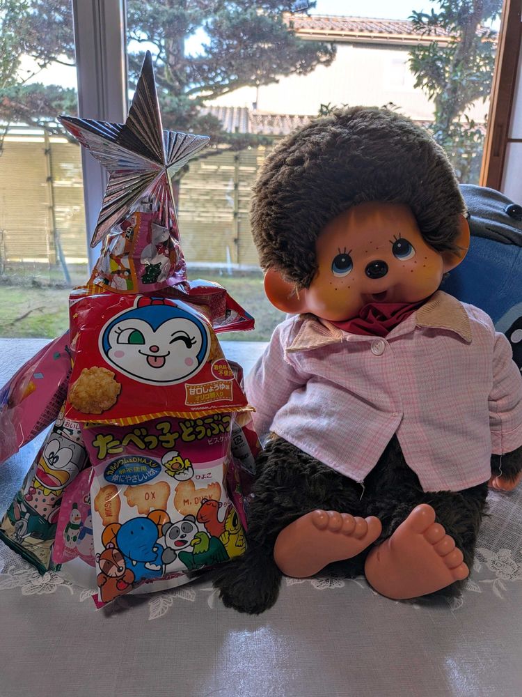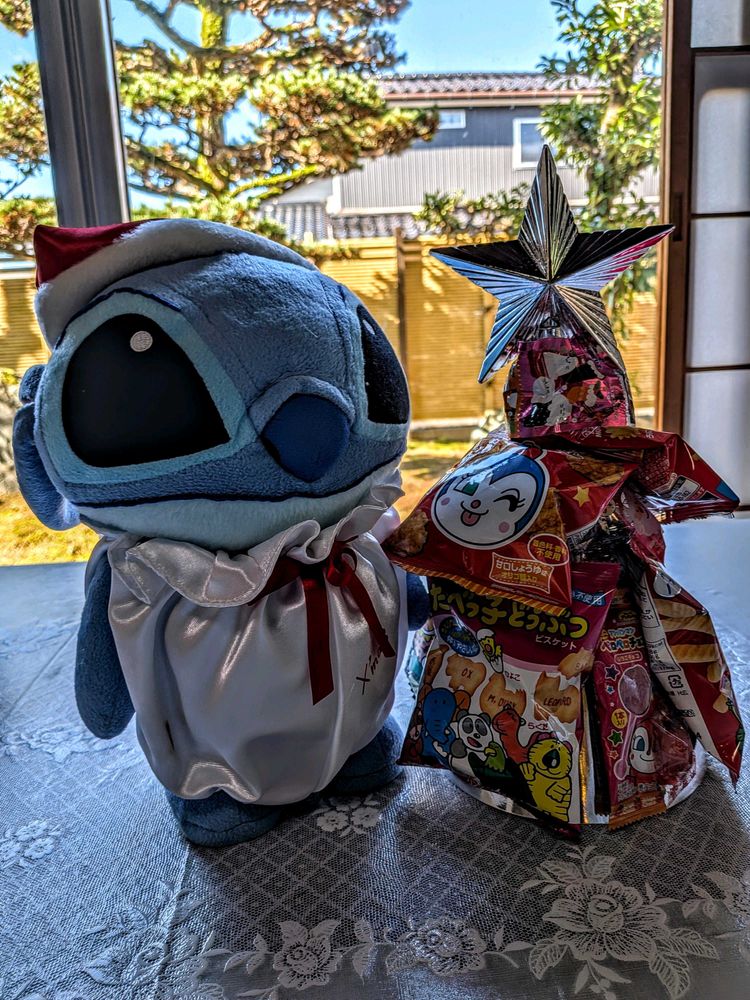 4️⃣5️⃣昨日、元同僚の家に行きお菓子のツリーを作って来ました😘しばらくは買わなくていいわ😂家のぬいぐるみと一緒に🤳😁