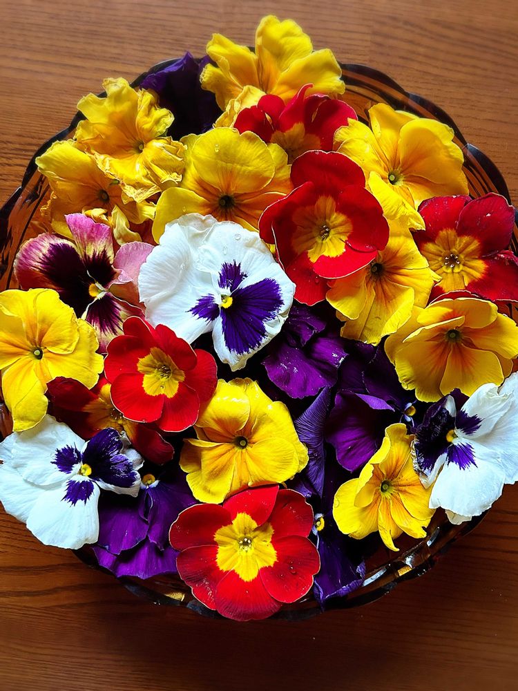パンジーの花をテーブルの上に置いて華やかさを出してみたよ😄