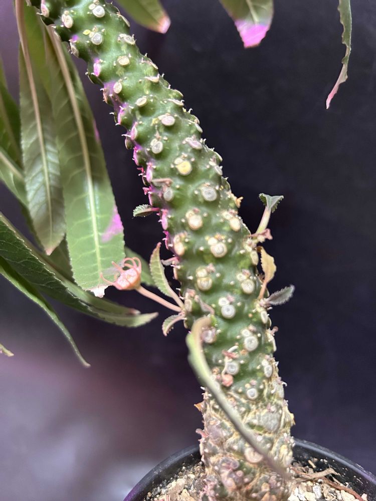うちでギガスの次に大きいドルステニア。去年は一気に伸びたのに今年は背が伸びず、幹が曲がり太りました。