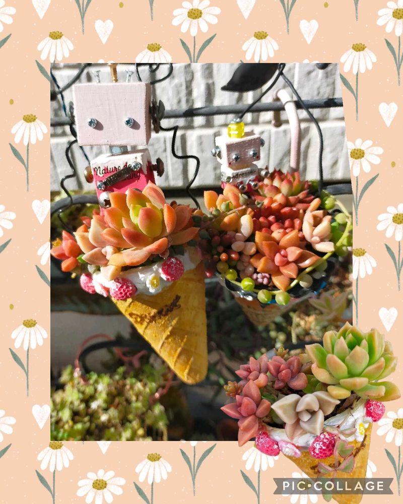 アイスコーン鉢に多肉ちゃん達かわいいね😍🩷🩷🩷
