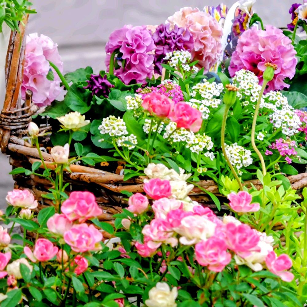 ミニバラさんの、お隣や上の段にあるお花と撮った、寄せ植えもどきです〜😆🎉