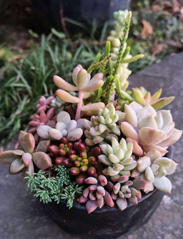 何年も前にワークショップで作った寄せ植えを仕立て直しました✨