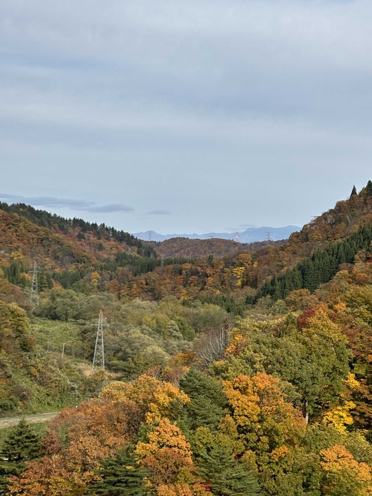 白川ダム湖から見た山々の紅葉🍁🍁🍁 天気が良ければもっと綺麗だったかもね〜🤗