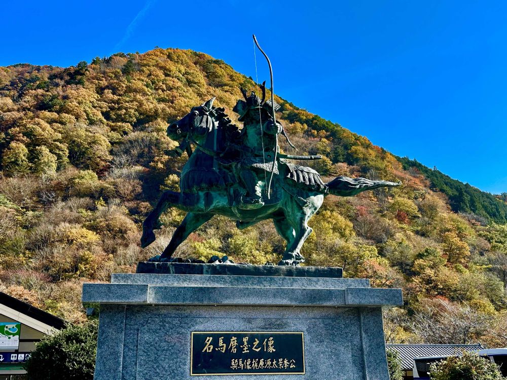 錦に染まった山をバックに名馬 磨墨(するすみ)もお出迎え🐎‼️
